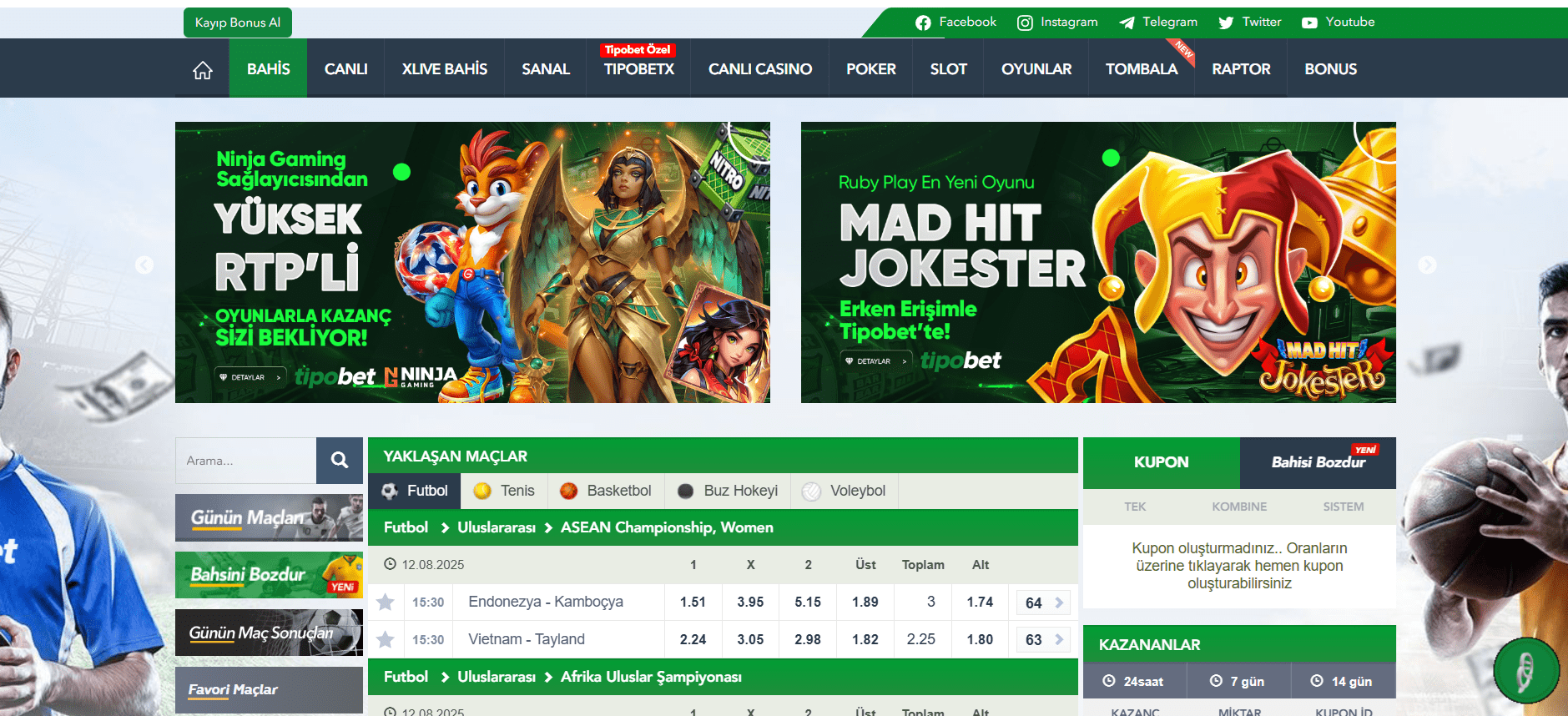Yüksek oranlar ve geniş oyun yelpazesiyle Tipobet, spor tutkunlarının en çok tercih ettiği adreslerden biridir. Futbol, basketbol ve tenis başta olmak üzere onlarca farklı spor dalında bahis seçenekleri sunulmaktadır. Böylece kullanıcılar hem eğlenmekte hem de kazanç şansı yakalamaktadır.