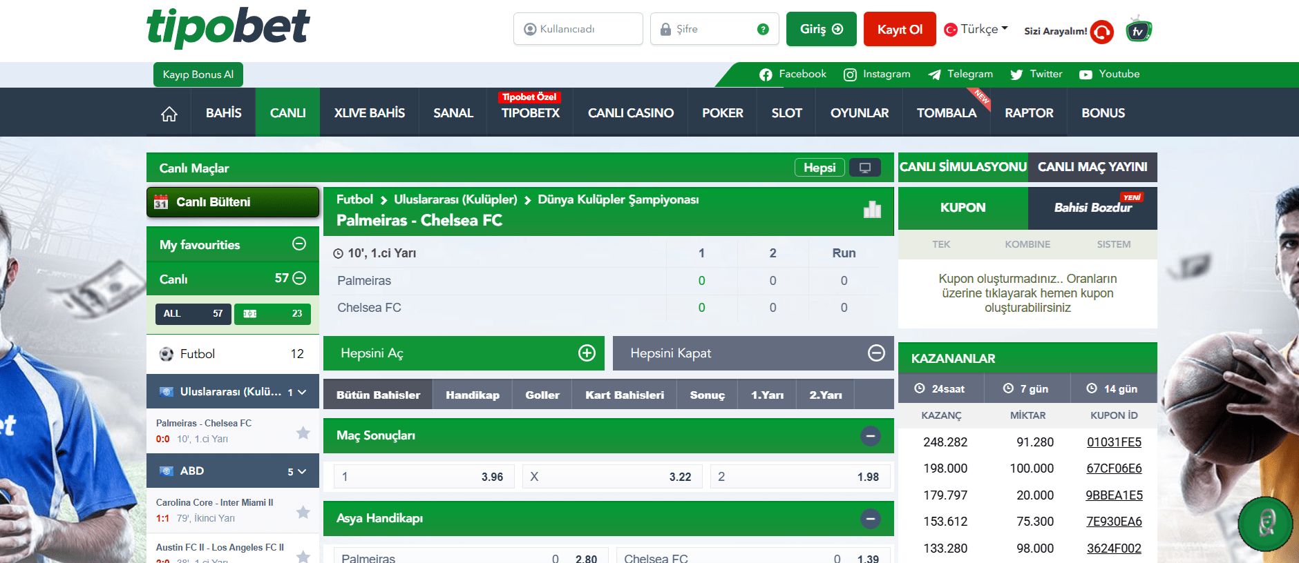 Mobil uygulama üzerinden canlı bahis yaparak maçların heyecanını anlık olarak yaşayabilirsiniz. Oran değişimlerini anında takip edip hızlıca işlem yapabilirsiniz.