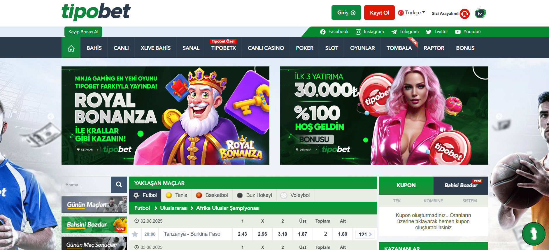 Platforma giriş yaptıktan sonra sınırsız eğlence seni bekler. İlk dikkat çeken alan canlı bahis bölümüdür. Günün maçları ve oranlar burada yer alır. Oyuncular maç esnasında kuponlarını oluşturur. Bu da heyecanı artırır.