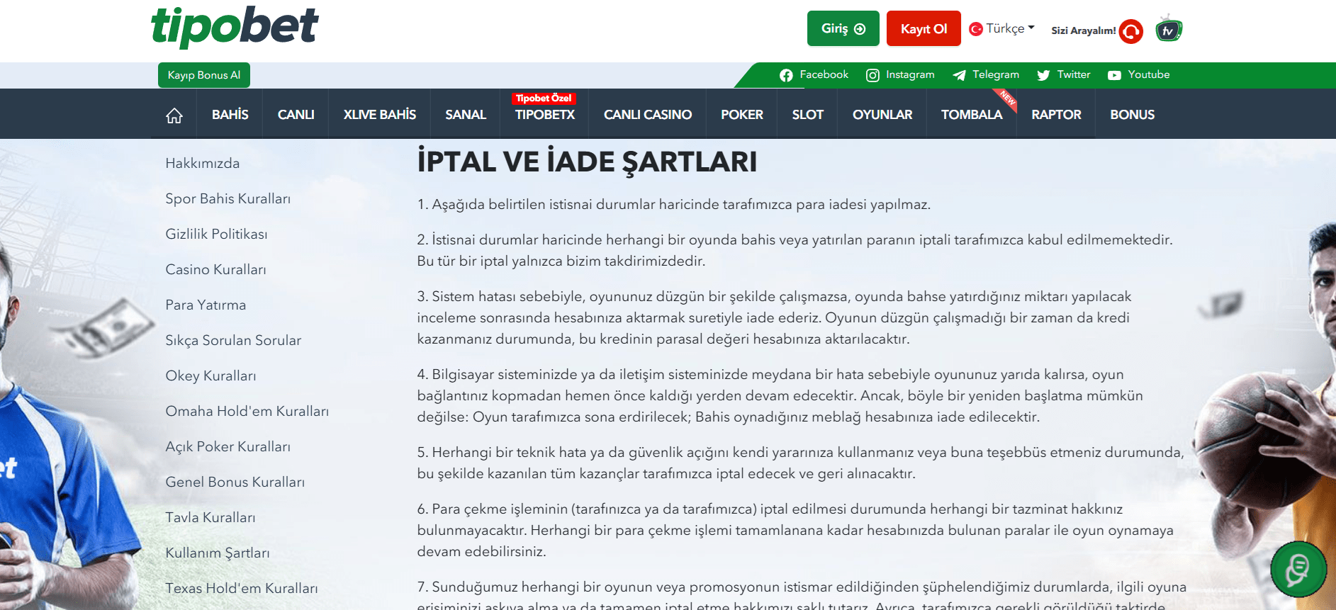 Tipobet iptal ve iade şartlarıyla her oyuncuya şeffaf bir ortam sunmaktadır. Teknik hatalarda iade yapılmakta, güvenlik açıkları kapatılmakta ve kullanıcıların yatırımları korunmaktadır.