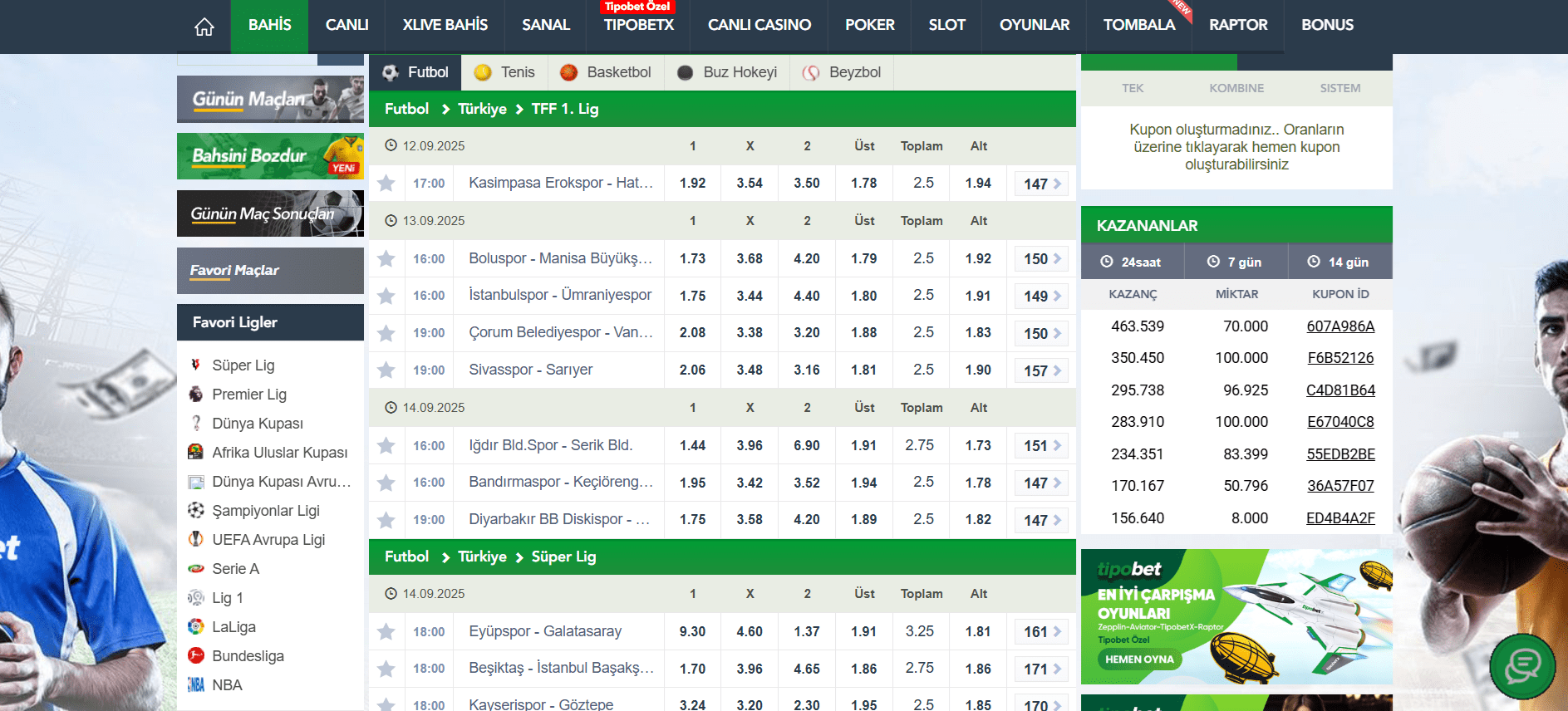 Tipobet spor bahisleri, futbol başta olmak üzere basketbol, tenis, voleybol ve e-spor gibi pek çok alanda çeşitlilik sunmaktadır. Dünya genelindeki büyük liglerden yerel müsabakalara kadar farklı karşılaşmalar oyuncuların karşısına çıkmaktadır.