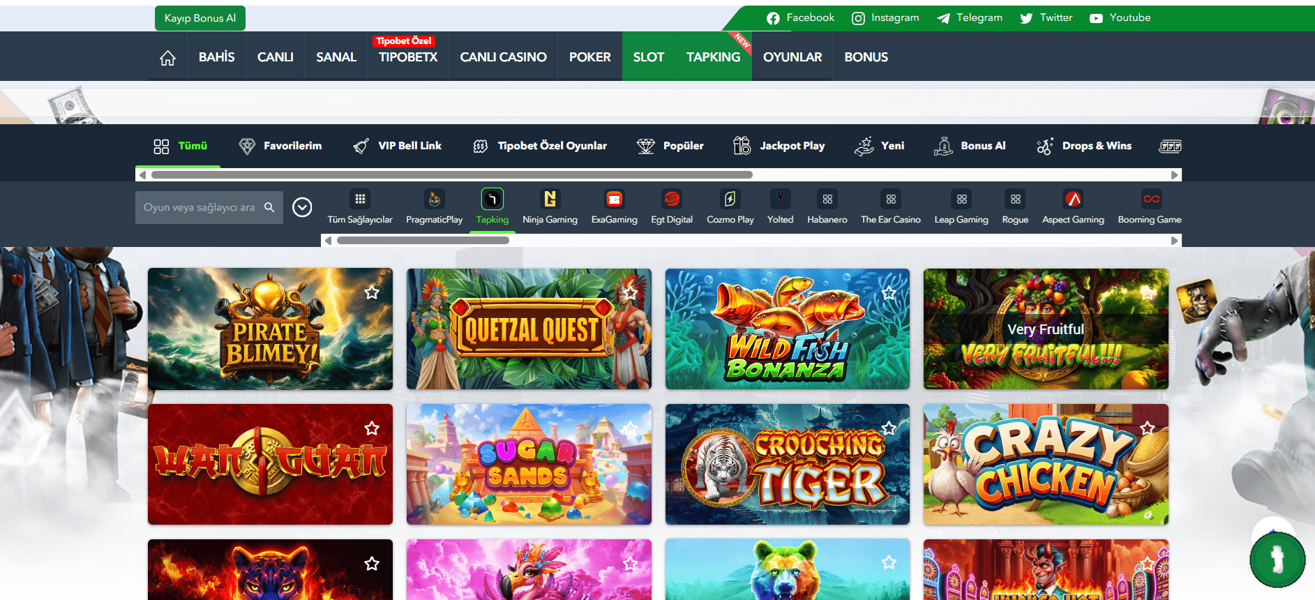Tapking oyunları, canlı casino atmosferini oyuncuların ekranına taşımaktadır. Gerçek krupiyelerle oynanan masa oyunları, kullanıcıya profesyonel bir deneyim sunmaktadır. Her oyun, yüksek çözünürlüklü görüntü ve güçlü ses sistemiyle desteklenmektedir.
