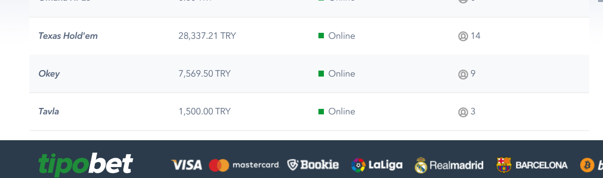 Tipobet platformunda her seviyede oyuncuya uygun masalar yer almaktadır.